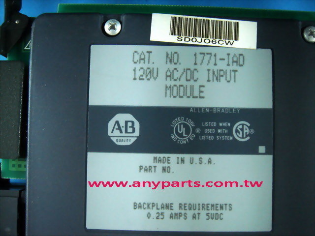 (A-B PLC) ALLEN BRADLEY 1771 PROGRAMMABLE CONTROLLER CPU:1771-IAD INPUT MODULE