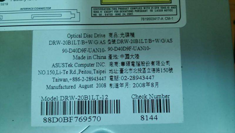 ASUS DRW-20B1LT/B+W/G/AS OPTICAL DISC DRIVE