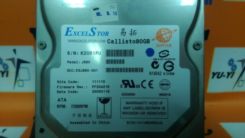 EXCEL STOR J880 IDE 80GB HARD DISK DRIVE