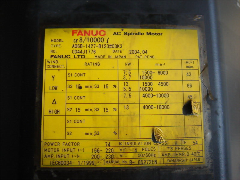 FANUC AC SERVO MOTOR Α8/10000I TYPE.A06B-1427-B123#03K3