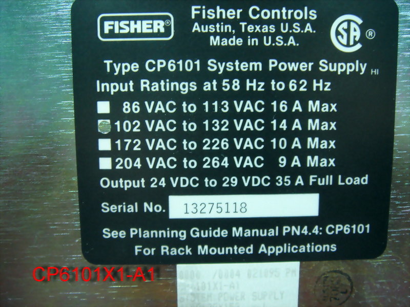 FISHER ROSEMOUNT CP6101X1-A1 SYSTEM POWER SUPPLY 102 TO 132 VAC (13275118)