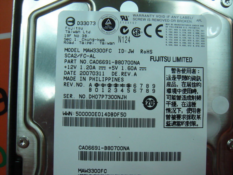 FUJITSU LIMITED MAW3300FC 300GB 10K HARD DRIVE SCS
