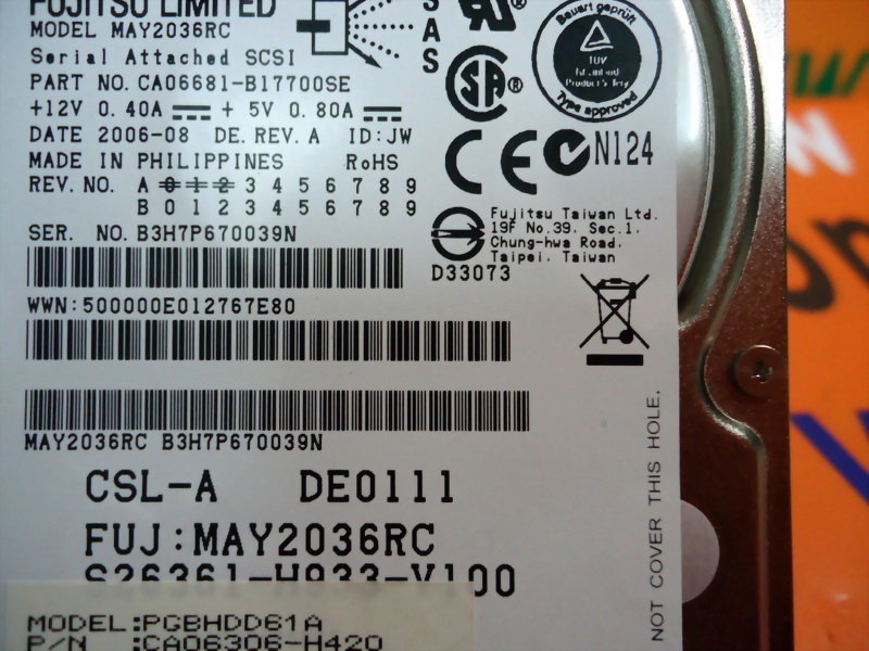 FUJITSU MAY2036RC CA06681-B17700SE PGBHDD61A