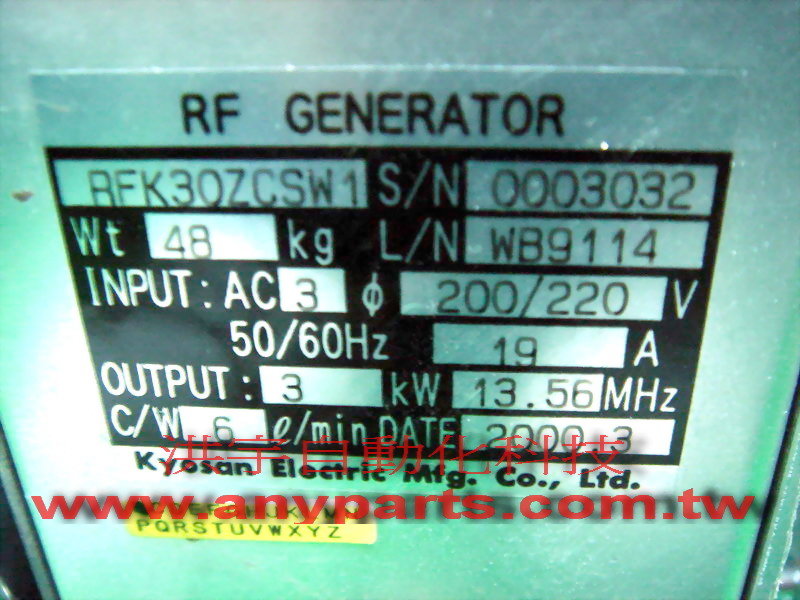 KYOSAN RFK30ZCSW1 3KW RF GENERATOR
