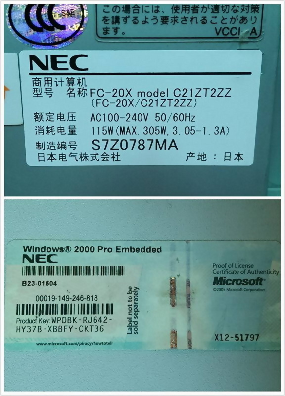 Model : NEC FC98-NX FC-20X MODEL C21ZT2ZZ