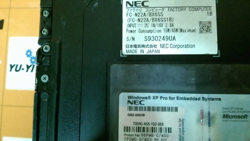 Model : NEC SHIELDPRO FACTORY COMPUTOR FC-N22A/BX6SS 1B