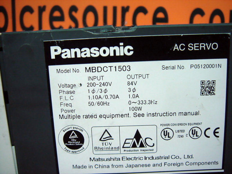 PANASONIC AC SERVO MBDCT1503