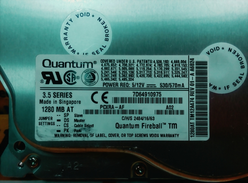 Model : QUANTUM PCXRA-AF 1280MB IDE HARD DISK DRIVE