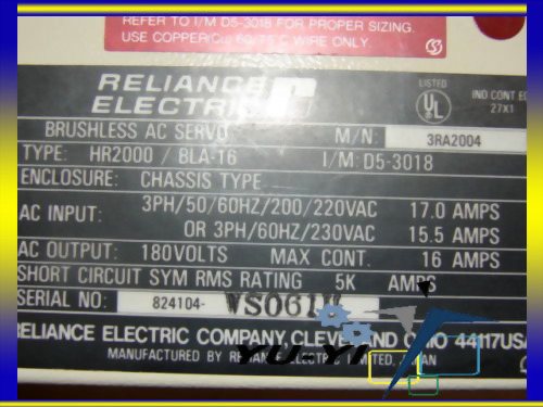 RELIANCE 3RA2004 HR2000 BLA-16 AC SERVO 180VAC 16A