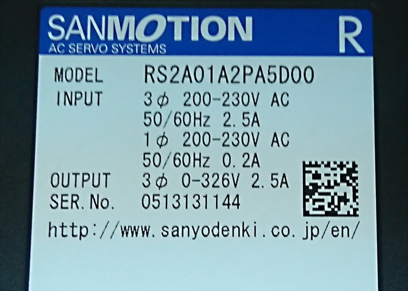 SANYO DENKI SANMOTION AC SERVO SYSTEMS RS2A01A2PA5D
