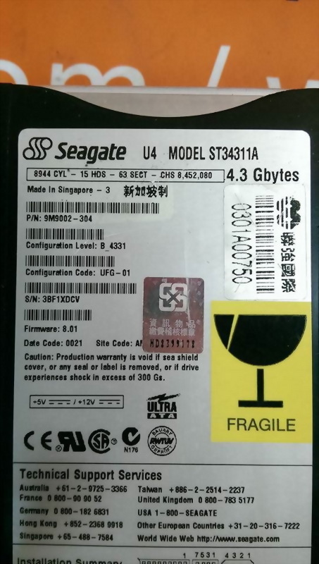 SEAGATE HARD DRIVER 4.3GB ST34311A