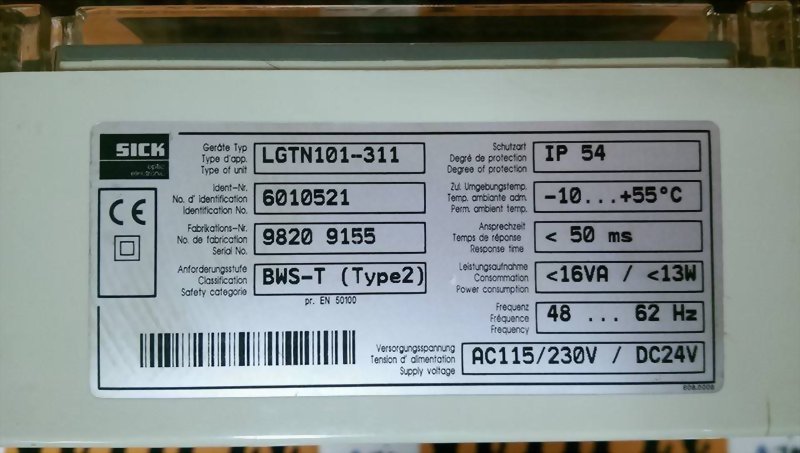 Model : SICK CONTROL UNIT LGTN101-311