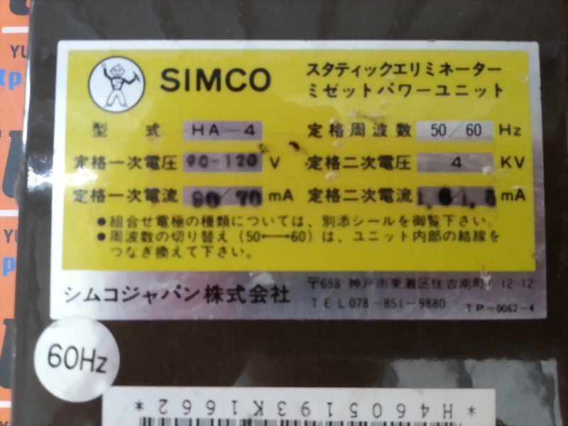 Model : SIMCO HA-4 POWER SUPPLY 50/60HZ 90-120V 90/70MA
