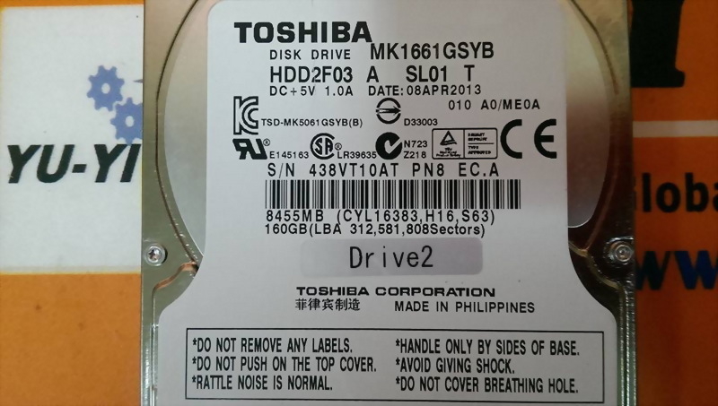 TOSHIBA MK1661GSYB 160GB 7200 PRM 2.5" INTERNAL DISK