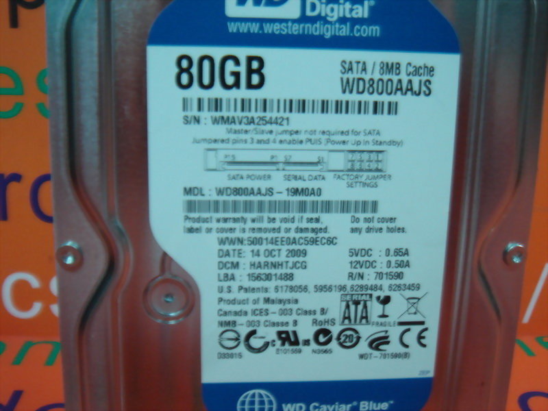 WESTERN DIGITAL WD800AAJS-19M0A0 80GB SATA HARD DRIVE