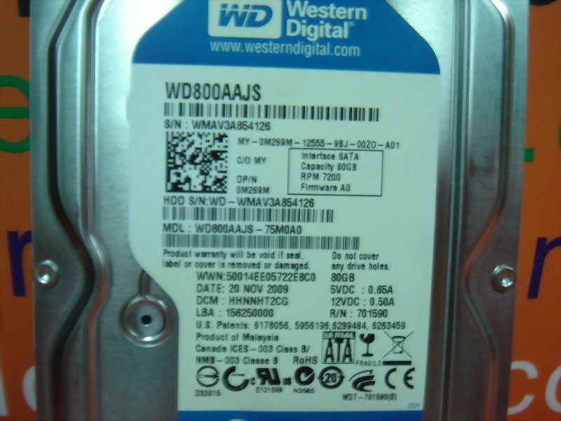 WESTERN DIGITAL WD800AAJS-75M0A0 80GB SATA HARD DRIVE