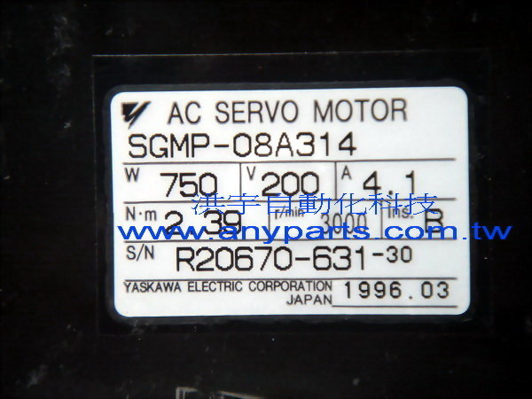 Model : YASKAWA AC SERVO MOTOR SGMP-08A314 750W 200V 4.1A