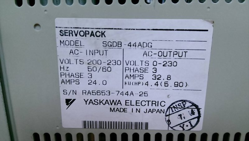 Model : YASKAWA SERVOPACK AC SERVO DRIVE SGDB-44ADG
