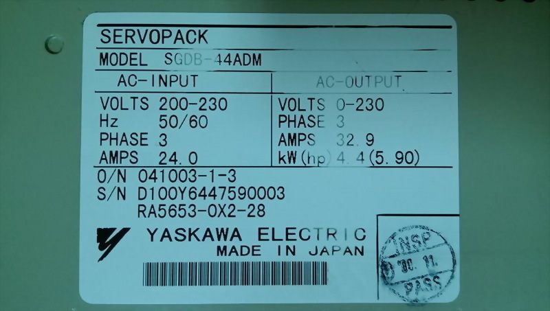 Model : YASKAWA SGDB-44ADM SERVOPACK