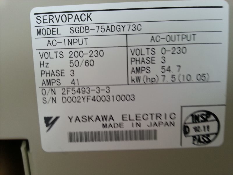 Model : YASKAWA SGDB-75ADGY73C Servopack Servo Drive