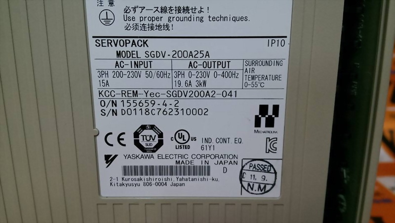 Model : YASKAWA SGDV-200A25A SERVOPACK 200V