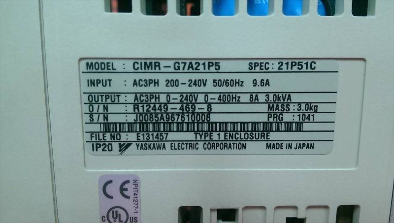 Model : YASKAWA VARISPEED G7 INVERTER CIMR-G7A21P5